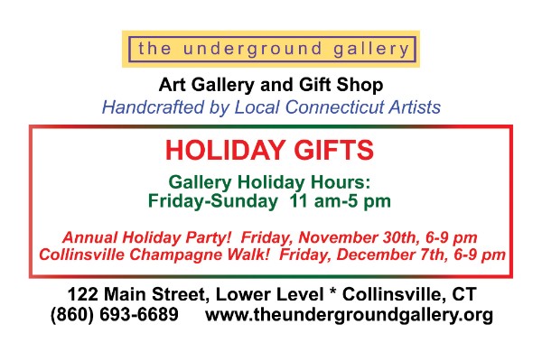 [Free parking is across the street in Saint's Lot. When entering say "Clare Gallery event." The attendant will direct you where to park. Additionally, the entrance is handicapped accessible. Phone: (860) 756-4034.]